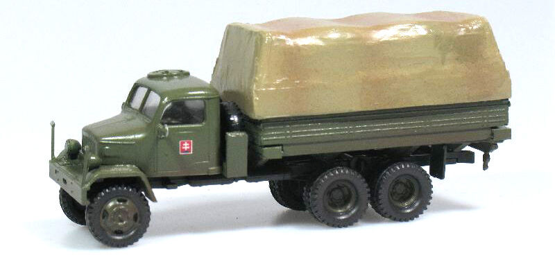 Kompletní plastiková stavebnice vojenského valníku. Obsahuje probarvené plastikové výlisky na sestavení modelu, kovové osičky a sadu obtisků ČSLA, AČR a ASR.