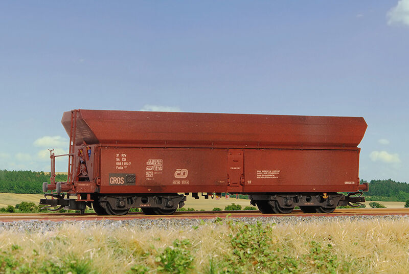 Kompletní stavebnice samovýsypného vozu. Obsahuje plastikové výlisky na sestavení modelu včetně kinematik, spřáhel a kvalitních soustružených kovových dvojkolí, kovové lepty, závaží a obtisky. Provozovatel České dráhy/ČD cargo, V.-VI. epocha.