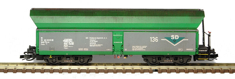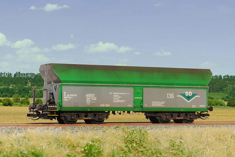 Kompletní stavebnice samovýsypného vozu. Obsahuje plastikové výlisky na sestavení modelu včetně kinematik, spřáhel a kvalitních soustružených kovových dvojkolí, kovové lepty, závaží a obtisky. Provozovatel Severočeské doly – Kolejová doprava, V.-VI. epocha.