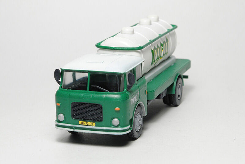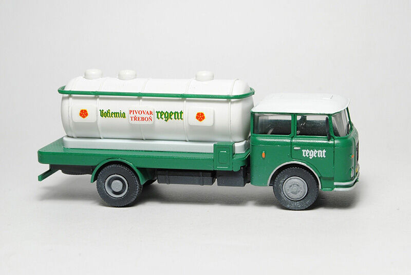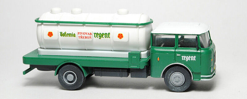 Kompletní plastiková stavebnice automobilu pro převoz piva. Obsahuje probarvené plastikové výlisky na sestavení modelu, kovové osičky a sadu obtisků.