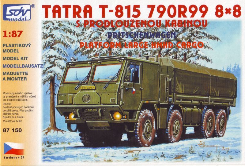 Kompletní plastiková stavebnice vojenského vozidla Tatra 815-7. Obsahuje probarvené plastikové výlisky na sestavení modelu, leptané doplňky a sadu obtisků.