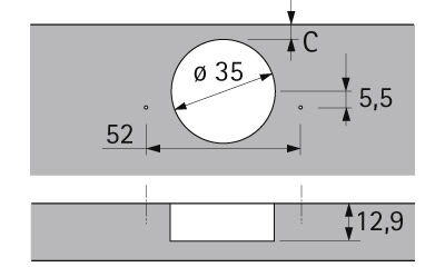 Závěs s klipovou technikou a integrovaným tlumením, naložený. Kvalita v souladu s EN 15570, úroveň 3. Pro tloušťku dveří 15 - 24 mm. Průměr misky 35 mm. Hloubka misky 12,8 mm. Integrované seřízení naložení + 2 mm, - 2 mm. Integrované seřízení hloubky + 3 mm, - 2 mm. Seřízení výšky montážní podložkou. Všechny viditelné části v barvě černý obsidián.
