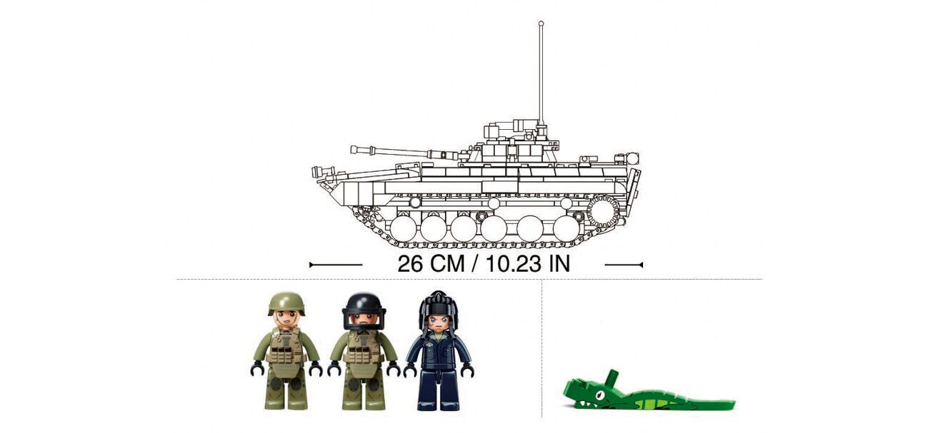 Sluban M38-B1136 je vybaven 738 díly a jednou figurkou, kterou můžete umístit dovnitř vozidla. Vyzkoušejte si postavit toto obrněné kolové bojové vozidlo 6x6 a projeďte si celý váš pokoj! Navíc, díky výkyvným a otáčivým částem na figurkách můžete vytvářet realistické scény z bojiště. A jelikož je tato stavebnice kompatibilní s mnoha dalšími na trhu, možnosti, jak rozšířit svou sbírku, jsou prakticky nekonečné. Začněte svou dobrodružnou cestu do světa vojenských operací a zažijte hodiny zábavy a výuky. Stavba bojového vozidla nikdy nebyla tak vzrušující.Vstupte do světa vojenských operací s bojovým vozidlem pěchoty Sluban M38-B1136! Jste na správném místě, pokud hledáte stavebnici, která zaujme, baví a vzdělává. Představujeme vám Sluban bojové vozidlo pěchoty - moderní a detailně propracovanou stavebnici, která poskytne hodiny zábavy a výuky. Tato stavebnice ze série Army je perfektní pro mladé fanoušky vojenství, ale potěší i dospělé sběratele.