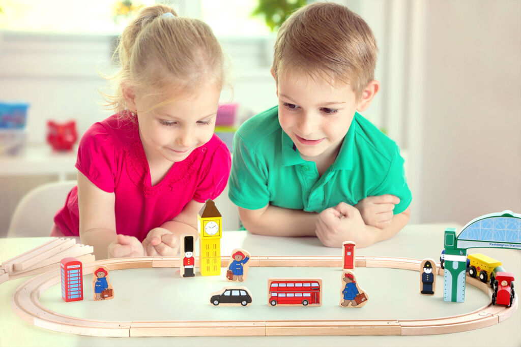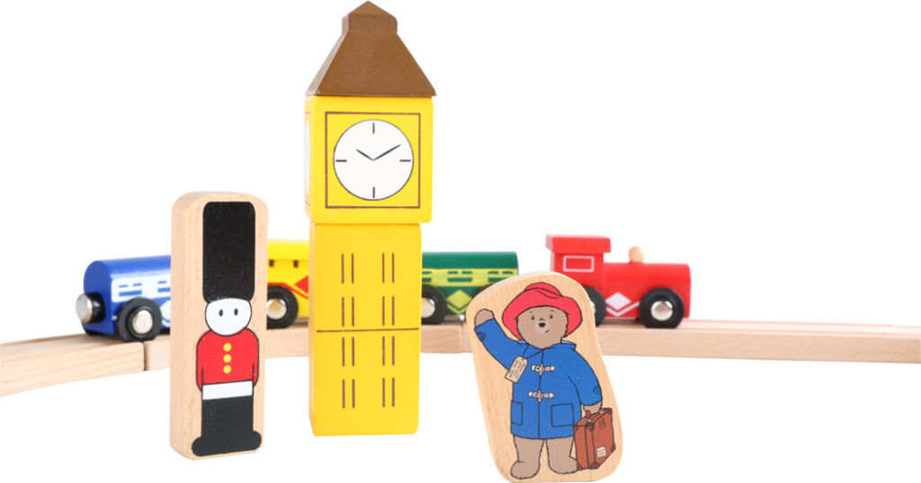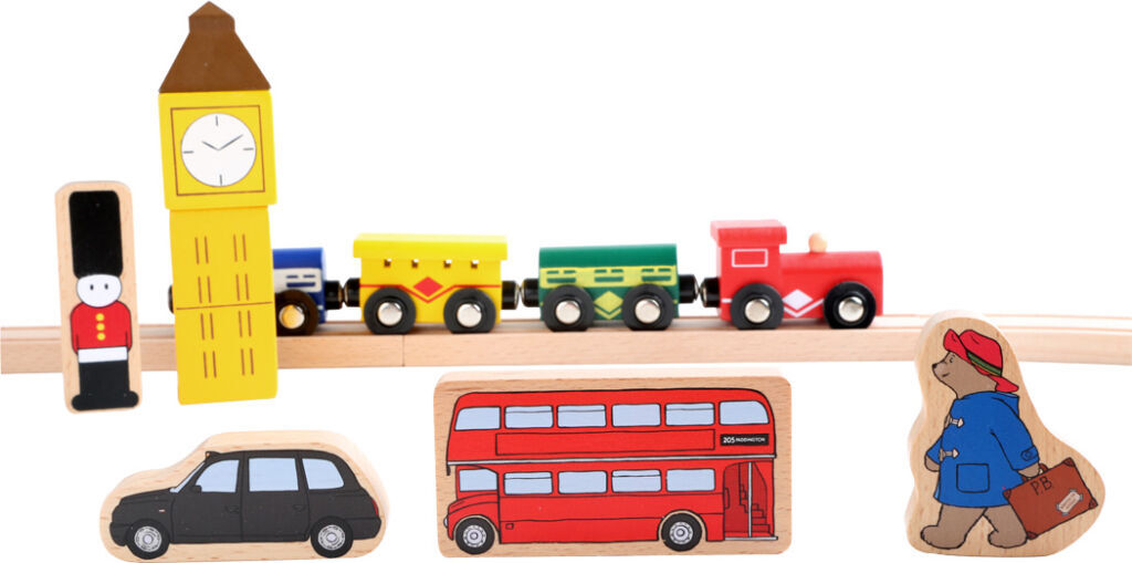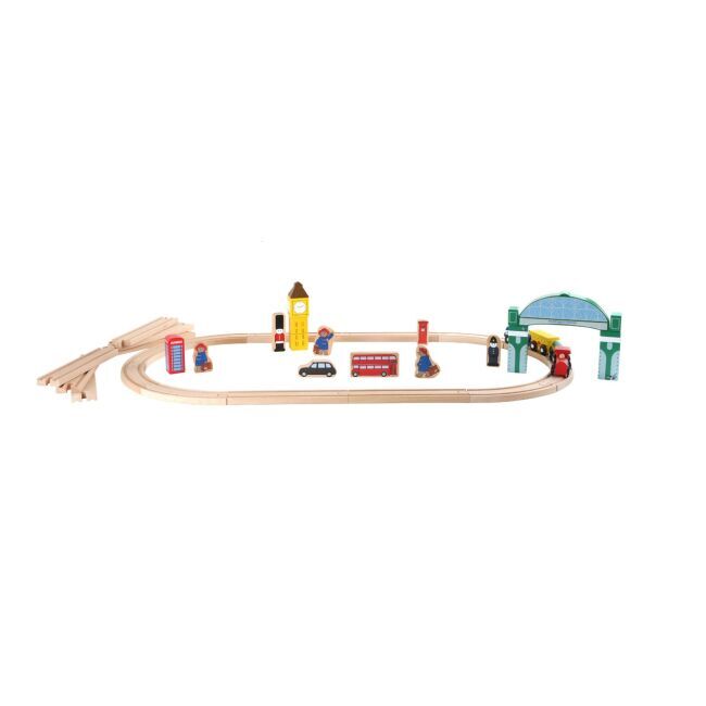 Prosím, nastupte, dveře se zavírají! Paddington se vydává na cestu. Tato skvělá stanice je vybavena dřevěnými kolejemi a má vlastní nádražní halu. Má také různě potištěné dřevěné prvky zobrazující slavné věci anglické metropole jako Big Ben, červenou telefonní budku nebo červený vyhlídkový autobus. V neposlední řadě je to vláčkodráha, která Paddingtona proveze světem.