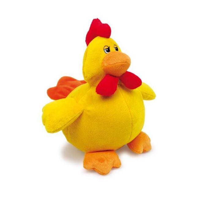 Když zatáhnete za vejce, tak začne tato hebká slepička kdákat, zavibruje a vejce se zasune zpět. Šustící folie v ocásku, chrastítka v křídlech a zrní v nohách rozzáří dětská očička.