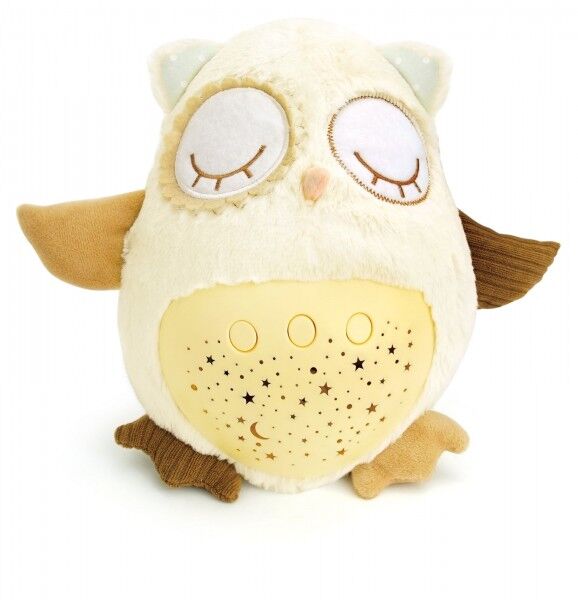 Plyšový usínáček v podobě sovičky pomáhá dětem snadněji usnout za pomocí příjemných melodií a tlumeného světla. Po zmáčknutí tlačítek na bříšku se z pokojíčku stane rázem říše snů. Sovička promítá noční oblohu v 8 barvách, hraje 8 ukolébavek a také zvuky, na které jsou děti zvyklé od maminky z bříška. Po odehrání ukolébavky promítá noční oblohu cca 1 minutu, poté se vypne. Velikost sovičky: 25 cm Velikost krabice: 22 x 26 x 17 cm Na baterie - 3 ks typu AA 1,5V - jsou součástí hračky Vhodná pro děti od 0 měsíců