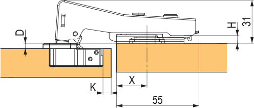 Závěs 90° přiložný s tlumením, klipový