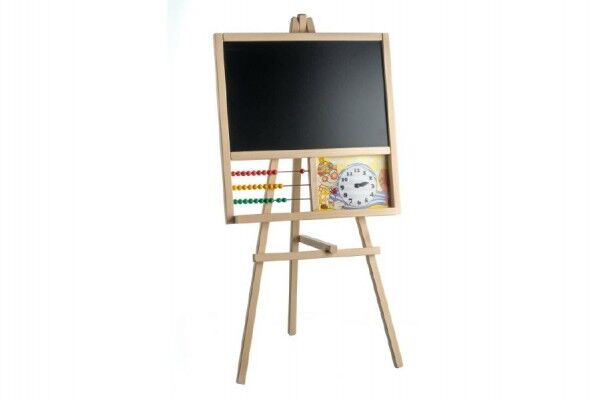 Tabule s dřevěným stojánkem by neměla chybět v žádném dětském pokojíku malého školáka. Tento model je navíc vybaven jednoduchým počítadlem a veselými ručičkovými hodinami, čímž dává dítěti více možností k poznávání. Rozměr 45 x 89 cm. Vhodné pro děti od 3 let.