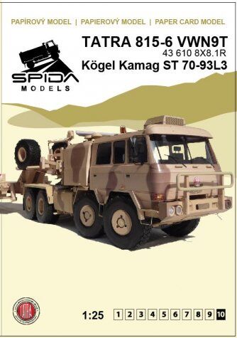 Model Tankového tahače Tatra vč návěsu Kögel v měřítku 1:25 tištěný ofsetem. Model je zpracovaný do těch nejmenších detailů na 46 stránkách formátu 225×320 a26 listů s návodnými kresbami s celkovým počtem 178 návodných kreseb které dostatečně poslouží k sestavení modelu bez psaného textu. Celková délka se zvetnutými nájezdy je 1055 mm. K modelu je možné objednat sadu laserových doplňků která obsahuje: 21x dezény, 798x bočnice dezénů, 84x pomocná kolečka do kol, 5x gravírovaný pochůzný plech, 2x mřížka na světla, 2x mřížka na blinkry,