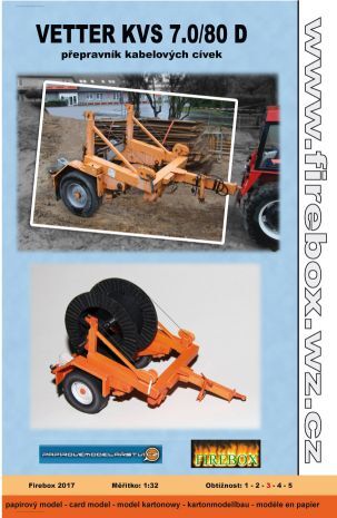 Vetter KVS 7.0/80 D - přepravník kabelových cívek Cena 30.00 Kč K odeslání Ihned Skladové číslo 2533 Sdílet ks Výrobce: Firebox Parametry Měřítko: 1:32 Technologie: Offsetový tisk Typ modelu: Civilní Umístění Modely > Papírové modely > Prcovní strojeModely > Papírové modely