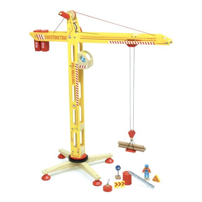 Dejte nový rozměr Vašemu staveništi a vrhněte se na stavbu těch nejvyšších budov se správným jeřábem. Svými impozantními rozměry se hračka stane nepřehlédnutelnou dominantou dětského pokojíčku. Množstvím pečlivě ztvárněných detailů, kabinou, protizávažími a kočkou nadchne každého fanouška stavební techniky. Díky široké podstavě je stabilní a umožňuje bezpečnou hru. Nabízí široké možnosti manipulace, celým jeřábem je možno plně otáčet, břemeno lze posouvat a pohodlně zvedat pomocí dvojice klik. Mezi dodávaným příslušenstvím naleznete pohyblivé figurky jeřábníka a dělníka, plošinu, magnet, různá břemena, ale i značky nezbytné k ohraničení probíhající práce. Vyrobeno z masivního dřeva a odolné překližky, ošetřeno atraktivními nezávadnými barvami.