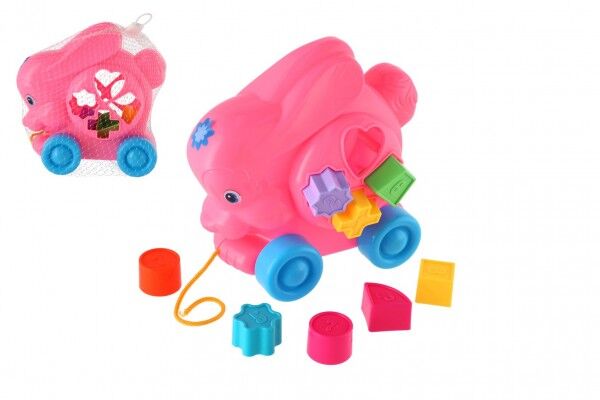 Tahací vkládací zajíc je ideální hračkou pro nejmenší. S vkládačkou se malé děti učí rozpoznávat různé tvary a barvy. Zajíc má po bocích otvory, do kterých děti vkládají příslušné tvary, které se pak vyndávají otevíracímí dveřmi ve spodní části hračky. Obsahuje 8 různých barevných dílků. Rozměry výrobku 17 x 18 x 9 cm. Vhodné pro děti od 18 měsíců.