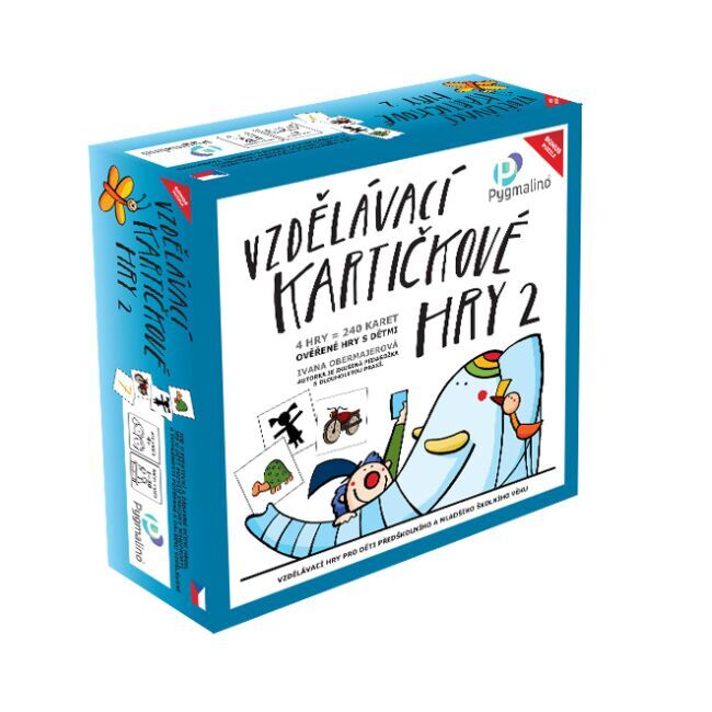 Vzdělávací kartičkové hry 2 jsou efektivním a zábavným způsobem učení formou hry, při níž si děti rozvíjejí všechny schopnosti a dovednosti potřebné k dalšímu vzdělávání. Autorkou vzdělávacích kartičkových her je zkušená pedagožka s dlouholetou praxí – paní Ivana Obermajerová. Balení obsahuje 4 hry a 240 kartiček.