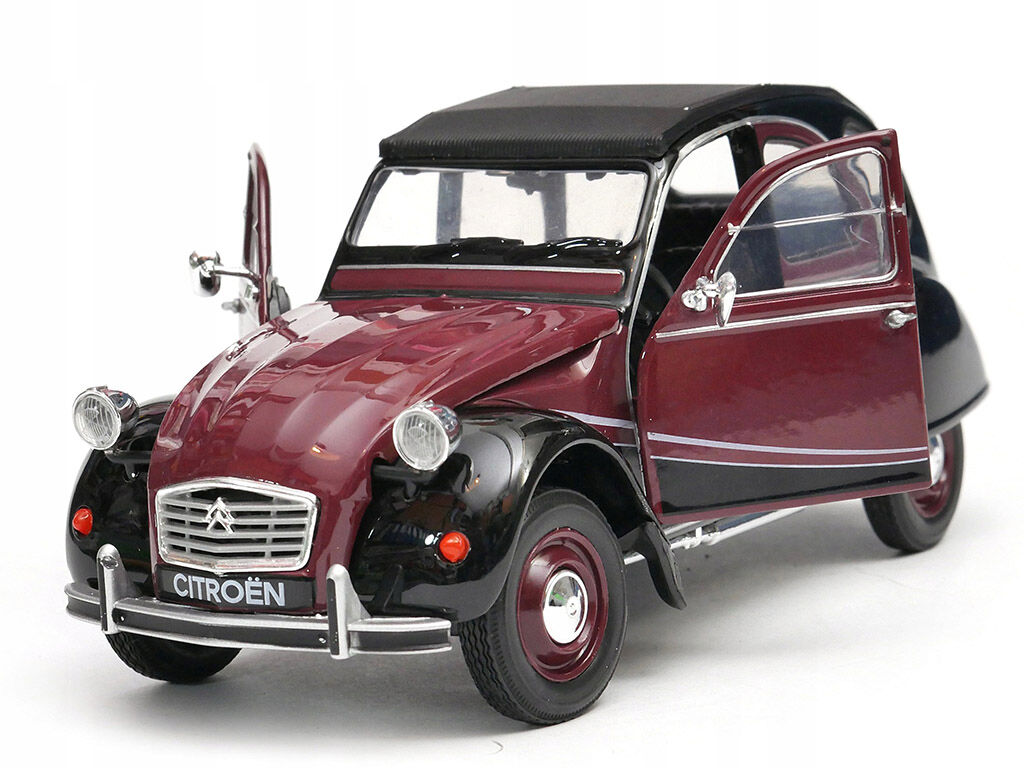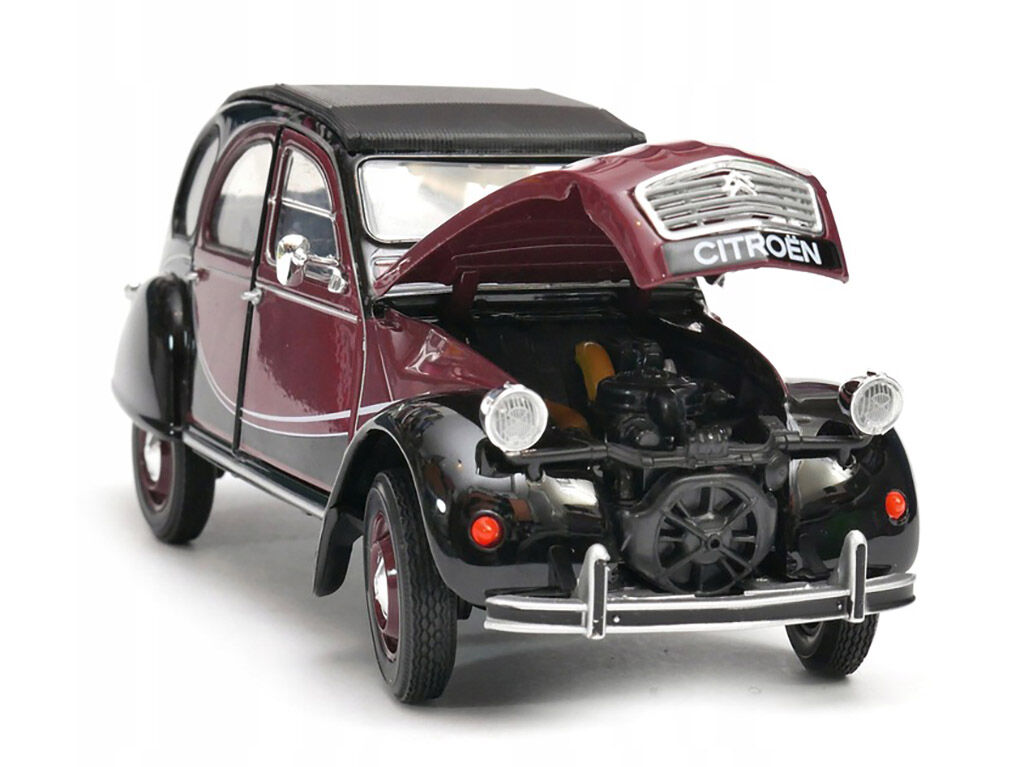 Detailní model Citroen 2CV z kovu a plastu má otevíratelné dveře i kapotu. Věrnost těchto modelů zvyšuje použití laků, které mají shodný barevný odstín jako skutečná auta. Měřítko 1:24 je zhotovením na hraně mezi sběratelským modelem a hračkou, autíčka vyžadují opatrnější zacházení. Dodáváno v různobarevné papírové krabičce s plastovým průhledem.