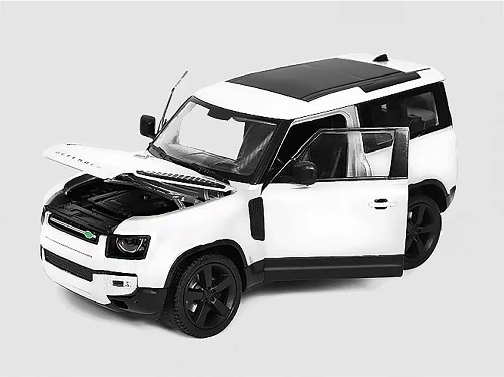 Detailní model Land Roveru Defender z kovu a plastu má otevíratelné dveře i kapotu. Věrnost těchto modelů zvyšuje použití laků, které mají shodný barevný odstín jako skutečná auta. Konkrétní barvu si můžete zvolit z nabízených možností. Měřítko 1:26 je zhotovením na hraně mezi sběratelským modelem a hračkou, autíčka vyžadují opatrnější zacházení. Dodáváno v různobarevné papírové krabičce s plastovým průhledem.