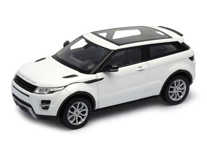 Detailní model bílého Land Rover Range Roveru Evoque z kovu a plastu má otevíratelné dveře i kapotu. Věrnost těchto modelů zvyšuje použití laků, které mají shodný barevný odstín jako skutečná auta. Měřítko 1:24 je zhotovením na hraně mezi sběratelským modelem a hračkou, autíčka vyžadují opatrnější zacházení. Dodáváno v různobarevné papírové krabičce s plastovým průhledem.