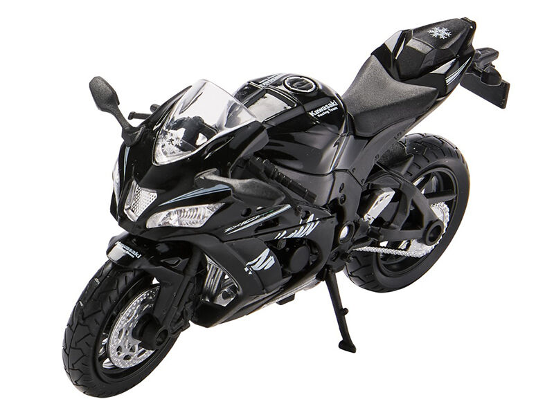 Model motocyklu Kawasaki 2017 Ninja ZX-10RR z kovu a plastu má otočná řídítka. Model je dodáván s podstavcem, na který je upevněn šroubem. Dodáváno v různobarevné papírové krabičce s plastovým průhledem.
