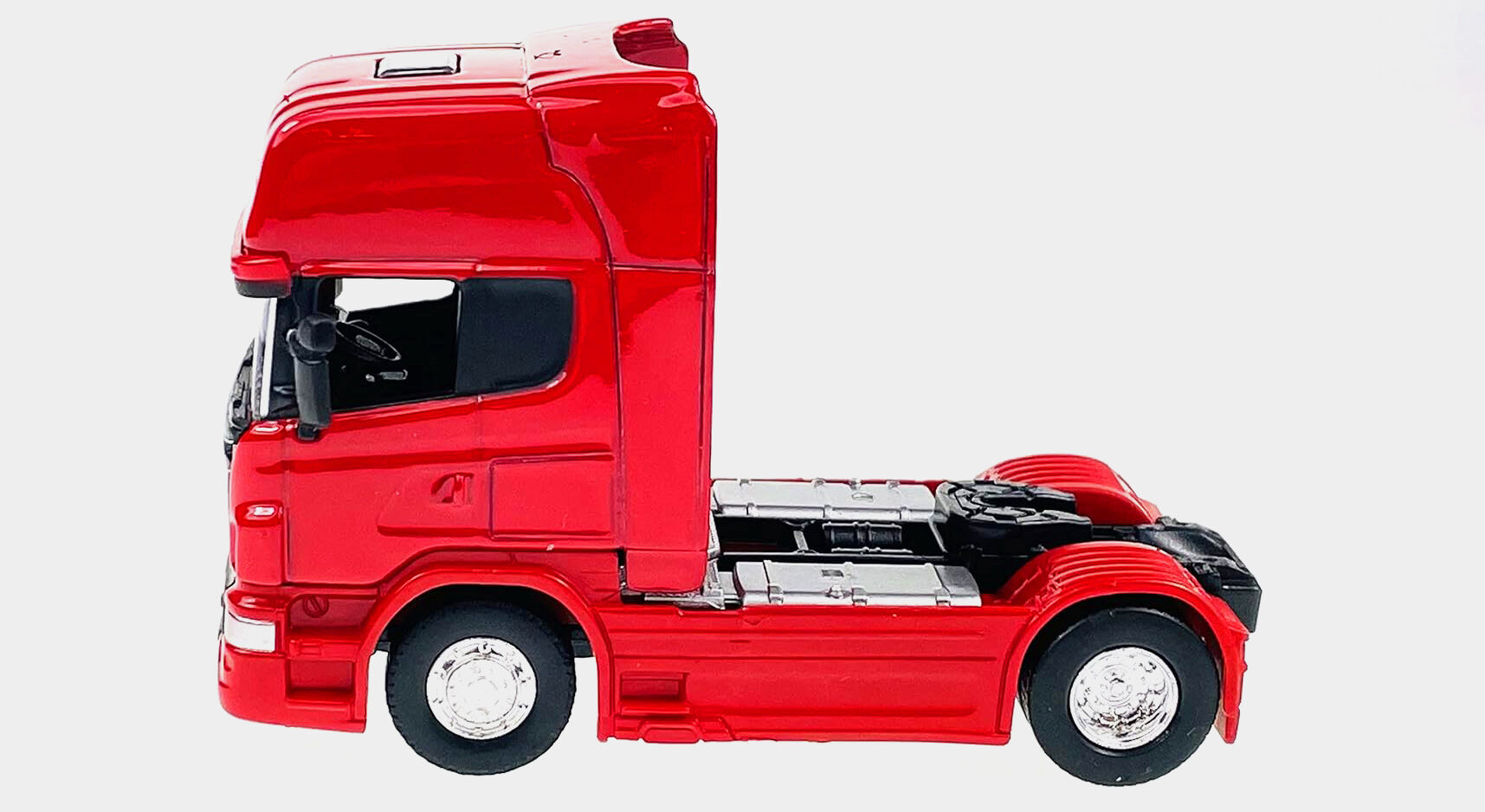Detailní model tahače Scania V8 R730 je vyrobený z kovu a plastu. . Baleno v kartónové krabičce s plastovým průhledem.
