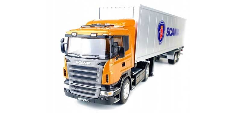 Detailní model tahače Scania R 470 s přívěsem je vyrobený z kovu a plastu. Přívěs je odnímatelný a jeho dveře jsou otevíratelné. Baleno v kartónové krabičce s plastovým průhledem.