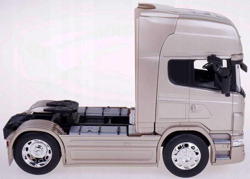 Model nákladního auta v měřítku 1:32 je vyrobený tlakovým litím z kovové slitiny v kombinaci s plastovými díly, balen v papírové krabičce s fóliovým průhledem a přichycen k vnitřnímu obalu. Tahač Scania V8 R730 "Hauler" - zlatý udělá radost jak malým řidičům jako plnohodnotná hračka, tak příznivům modelů aut.
