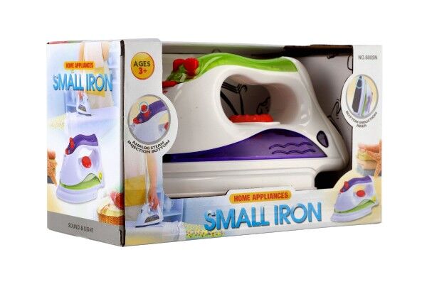 Žehlička plast 19cm na baterie se zvukem a se světlem v krabici