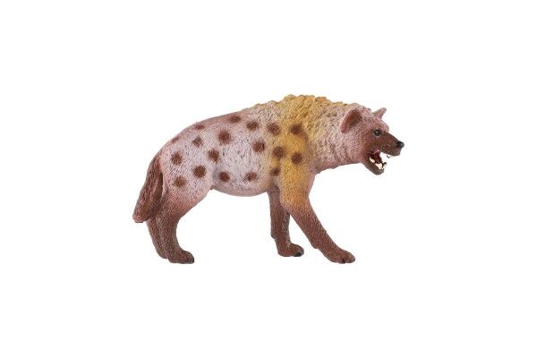 Hyena skvrnitá je poměrně velké zvíře s robustní stavbou těla; měří 95–166 cm, samotný ocas přibližně 40 cm, v kohoutku pak kolem 70–92 cm. Hmotnost se pohybuje nejčastěji mezi 45 a 70 kg. Jsou aktivní především za soumraku a v noci, neplatí to však bez výjimky. Většinu dne tráví hyeny v podzemních norách, které si samy hrabou. Pokud však mají možnost, rády obsadí opuštěnou noru hrabáče, dikobraza či prasete bradavičnatého a rády se před svými doupaty sluní. Hyeny buď aktivně loví, nebo vyhledávají mršiny.